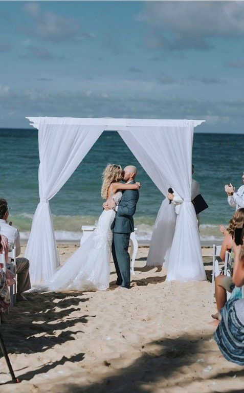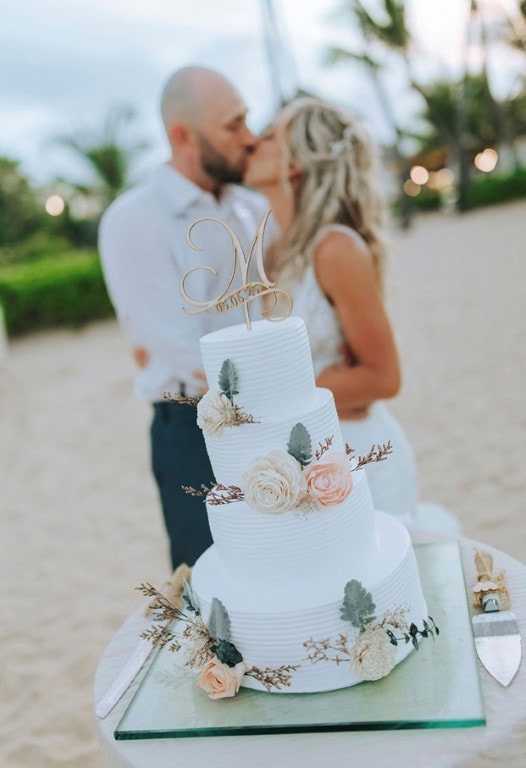 We had a ceremony on the beach with a cocktail hour immediately following and the reception immediately following that. The ceremony and cocktail hour were in the same area on the beach and the reception was on the beach next to the ceremony location. This made it easy for guests to get to the required destinations. We had a dinner buffet, dancing, bouquet toss, garter toss, cake cutting, parent dances, and our first dance during the reception. Due to having a destination wedding, our wedding was smaller than it would have been at home, however, we still had over 60 guests attend. Having it at a destination which required a passport, made us feel extremely lucky that we had so many guests willing to attend our special day. Knowing the sacrifices they made to attend made seeing them there very heartwarming and emotional for us. We felt extremely loved and were blessed to have so many guests. Since the wedding, we have had many guests say that our wedding was the best wedding they have been to. Some of our married guests stated they were glad they already got married because they wouldn’t be able to top ours. We all had so much fun and everyone seemed to enjoy themselves with sand on their feet.