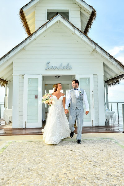 Did you plan traditional wedding elements? We had a traditional wedding that would have been like one at home. Our ceremony was at an over the water chapel, followed by a cocktail hour at our reception area overlooking the ocean. After cocktail hour we had a sit-down dinner followed by drinks and dancing. The entire day was an absolute dream!