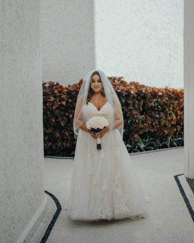 Ah, my favorite subject! I found my dress at Chantilly Place in Chelmsford, MA. I went in with a whole different perspective of what I wanted than what I actually got. But when I put that dress on, words honestly cannot describe it. I went with my maid of honor, my mom and my aunt/godmother My mom is probably the least emotional person in the world but when I saw her crying I knew I found the one. It’s beautiful. It flowed. It held me in where I wanted to look snatched. I felt like an angel in that dress. I actually bought extra lace and “designed” a special dress for my daughter to wear too. I don’t know that anyone even noticed it was made of the same material, but I knew and I loved it.