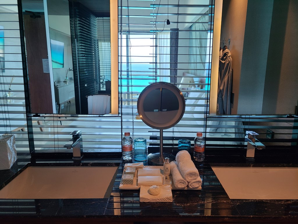 One of the highlights of Live Aqua Cancun is its luxurious accommodations. The resort offers renovated rooms and suites, all designed with comfort and elegance in mind. Each contemporary room features decorative accents, plush bedding, and a spacious bathroom with the option to completely open the wooden blinds and vanity mirrors, connecting with the bedroom to appreciate the ocean views. All rooms also boast large balconies or terraces with stunning views of the ocean or lush gardens. Guests can even choose bedding aromas to make their stay more of a personalized, serene experience.